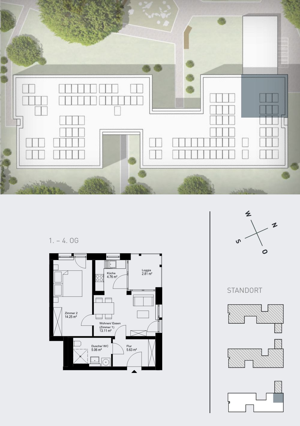 Wohnung 25, 32, 39 und 46 | 2-Zimmer-Wohnung | 1. – 4. OG